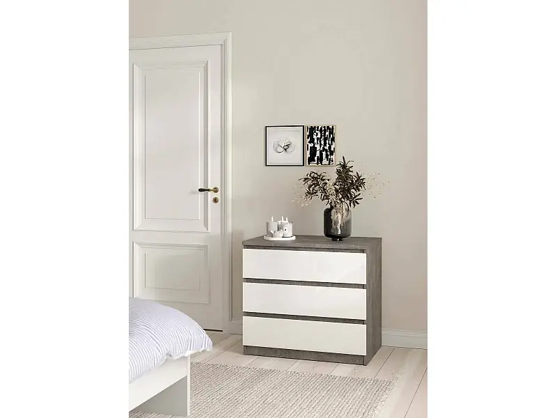 Nur Für Kurze Zeit Kommode Drenold, Mehrzweckkommode, Schlafzimmerkommode, Schrank mit Schubladen, 77×50 h70 cm, Zement und Weiß