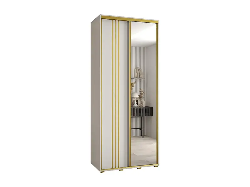 Nur Heute SCHWEBETÜRENSCHRANK DAVOS 7 235,2/110/60 2-türig (Weiß/Weiß/Gold)
