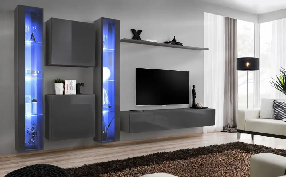 Die Wohnwand Balestrand 243 kommt in einem trendigen Grau daher und passt perfekt in jedes moderne Wohnambiente. Sie setzt Akzente und verleiht Ihrem Wohnzimmer einen Hauch von puristischem Chic. Die harmonische Farbgebung sorgt für eine ruhige Atmosphäre und eine wohnliche Ästhetik.