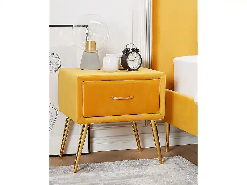 Preis Gesenkt Nachttisch mit 1 Schublade FLAYAT Samtstoff Senfgelb