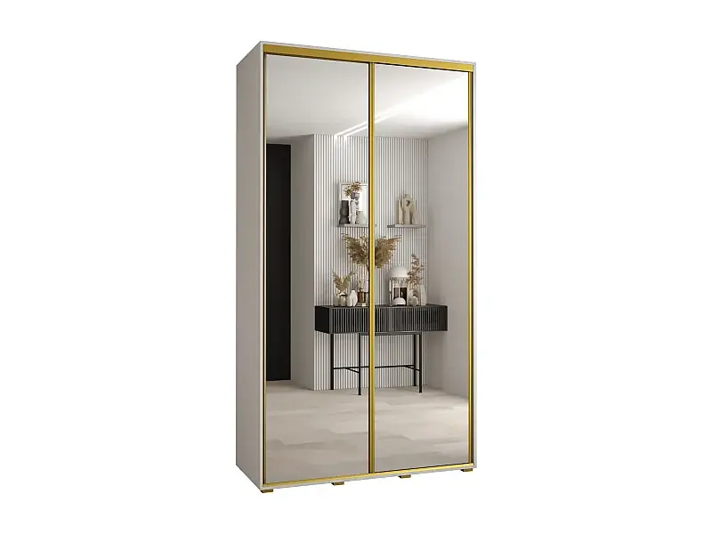 Preis Gesenkt SCHWEBETÜRENSCHRANK DAVOS 2 235,2/140/60 2-türig (Weiß/Weiß/Gold)