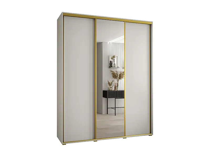 Preis Gesenkt SCHWEBETÜRENSCHRANK DAVOS 3 235,2/190/45 3-türig (Weiß/Weiß/Gold)
