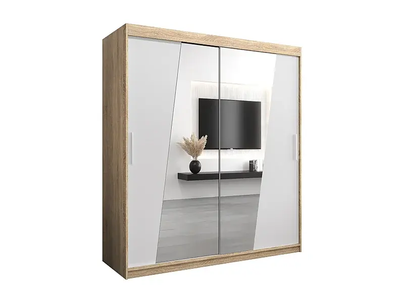 Preis Gesenkt Schwebetürenschrank Wave 200/180/62 2-Türig (Sonoma/Weiß)