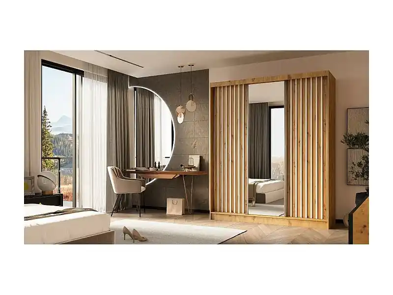 Preisknaller SCHWEBETÜRENSCHRANK Helix 180/216/61 eiche artisan+weiß mit Schubladeneinsatz
