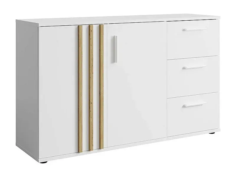 Preiswert Kommode VARIA – 2 Türen und 3 Schubladen – Modernes Design in Weiß und Handwerker-Eiche