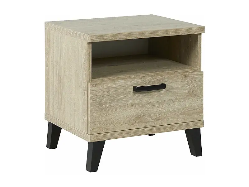 Robuster Nachttisch für Baby- und Kinderzimmer mit Schublade und Fach, Kollektion DANAÉ in hellem Eichenfarbton. Neue Kollektion