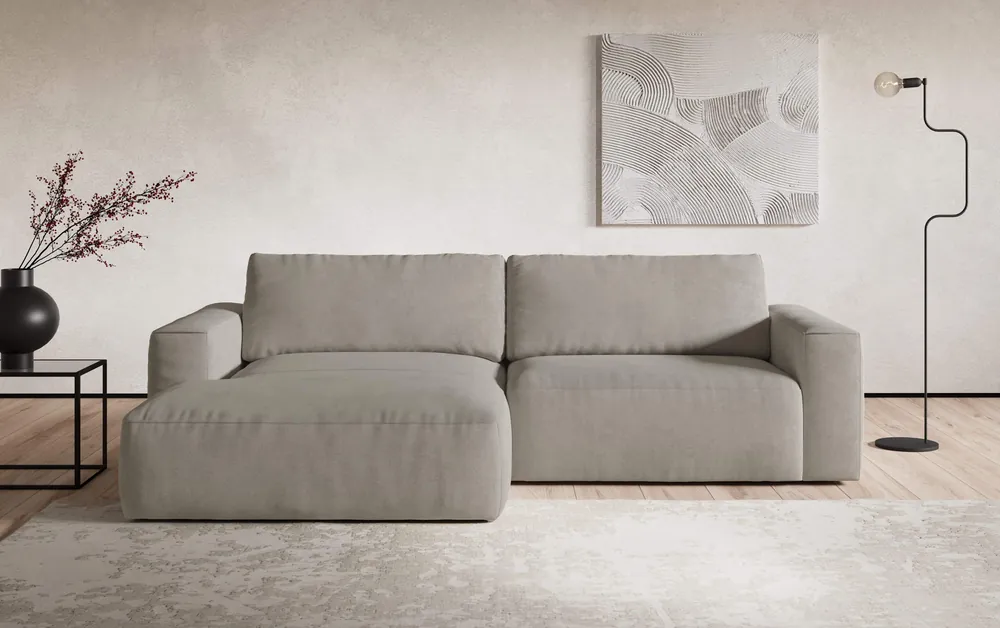Stylisches Ecksofa Anton mit Schlaffunktion und Bettkasten beidseitig montierbar im robustem Luxus-Webstoff Flachgewebe Auf die Plätze, Fertig, Los! Auf dem Ecksofa Anton von Black Red White mit einem Stellmaß von 289 x 189 ist genügend Platz, damit sich jeder seinen Lieblingsplatz sichern kann. Die knautschige Optik, die voluminösen und gemütlichen Polster mit vielen Kissen lassen das Ecksofa schnell zu ihrem persönlichen Lieblingsplatz werden. Der Besuch möchte doch spontan über Nacht bleiben? Eine integrierte Schlaffunktion lässt Anton im Handumdrehen in ein angenehmes Gästebett mit einer Liegefläche von 222 x 118 cm verwandeln. Das nötige Bettzeug können Sie einfach in dem unter der Bettfunktion gelegenen Bettkasten verstauen. Wählen Sie aus einer von vielen verfügbaren Farben und passen Sie Anton ihrem Wohnzimmer an. Das Sofa kann wahlweise mit Liegefläche links oder rechts aufgebaut werden. Finde bei Myhomelando dein Traumsofa für dein zuhause !!! Maße Ecksofa – alle Maße sind ca. Angaben Gesamt: 289 x 189 cm oder 189 x 289 cm Sitztiefe: 50 cm Sitzhöhe: 42 cm Rückenhöhe: 85 cm Ohne abgebildete Deko wie Kissen etc., Farbe auf dem Foto kann leicht vom Original abweichen (Bildschirm)