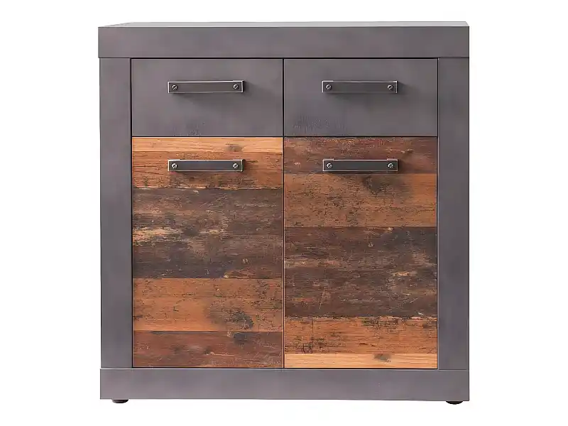 Saisonangebot Indy Kommode 2 Türen, 2 Schubladen grau Eiche Dekor, Old Wood Dekor.