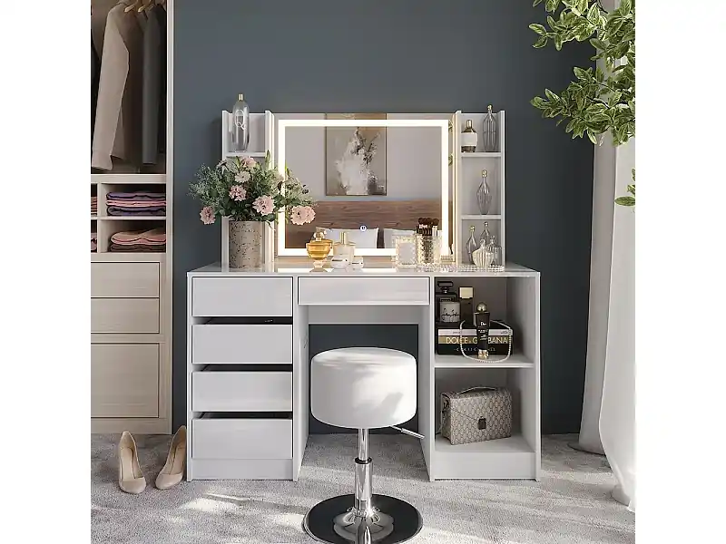 Schminktisch weiß/weiß hochglanz 128.2×50.1×76 sherry Direkt Vom Hersteller