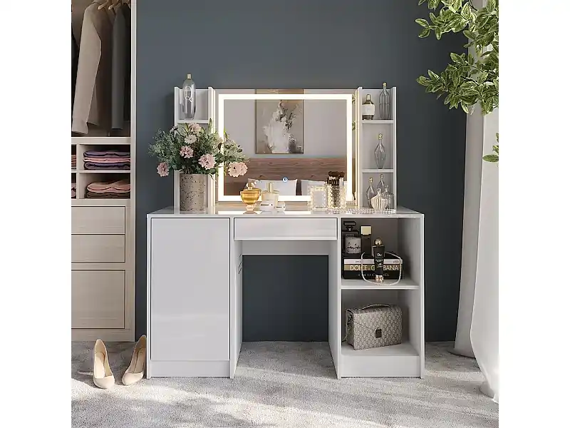 Schminktisch weiß/weiß hochglanz 128.2×50.1×76 sherry Jetzt Bestellen