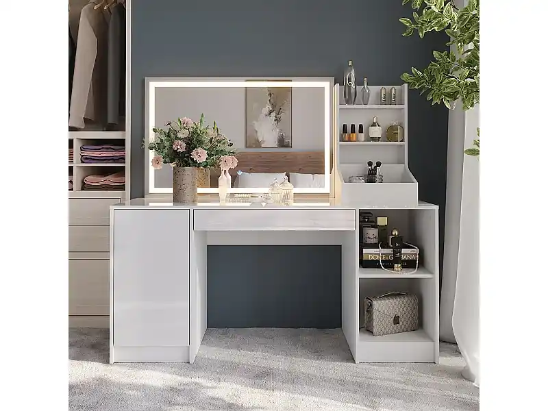 Schminktisch weiß/weiß hochglanz 158.2×50.1×76 sherry Kracherpreis