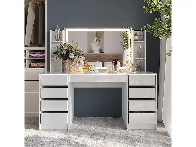 Schminktisch weiß/weiß hochglanz 158.2×50.1×76 sherry Zertifiziert