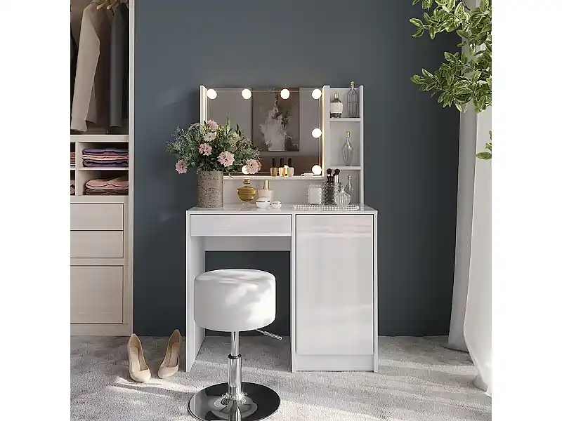 Schminktisch weiß/weiß hochglanz 89.8×50.1×76 sherry Begrenztes Angebot