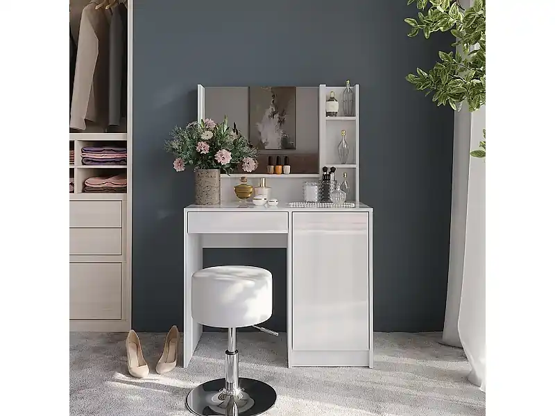 Schminktisch weiß/weiß hochglanz 89.8×50.1×76 sherry Nur Heute