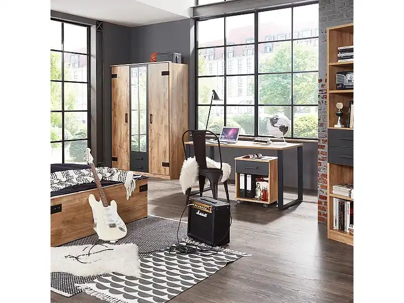 Schrank, mit 2 Türen, im Eiche-Dekor, 1 Spiegeltür und 2 Schubladen – H198 cm Kracherpreis