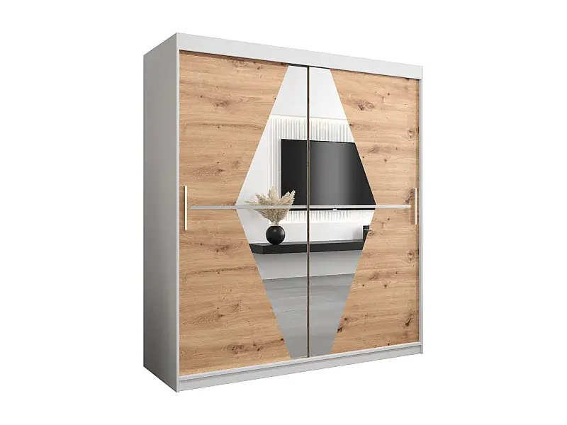 Schwebetürenschrank Boliwia 200/180/62 2-Türig (Weiß/Artisan) Direktkauf