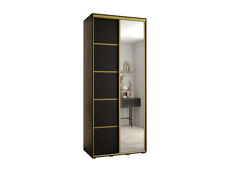 SCHWEBETÜRENSCHRANK DAVOS 5 235,2/100/60 2-türig (Schwarz/Schwarz/Gold) Heißes Angebot