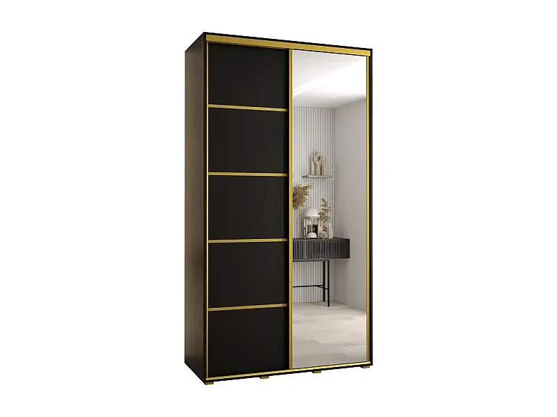 SCHWEBETÜRENSCHRANK DAVOS 5 235,2/140/60 2-türig (Schwarz/Schwarz/Gold) Must-Have