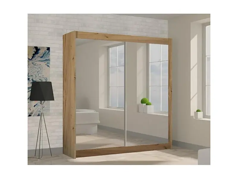 SCHWEBETÜRENSCHRANK Debra 200/216/61 eiche Artisan mit Spiegel Echt