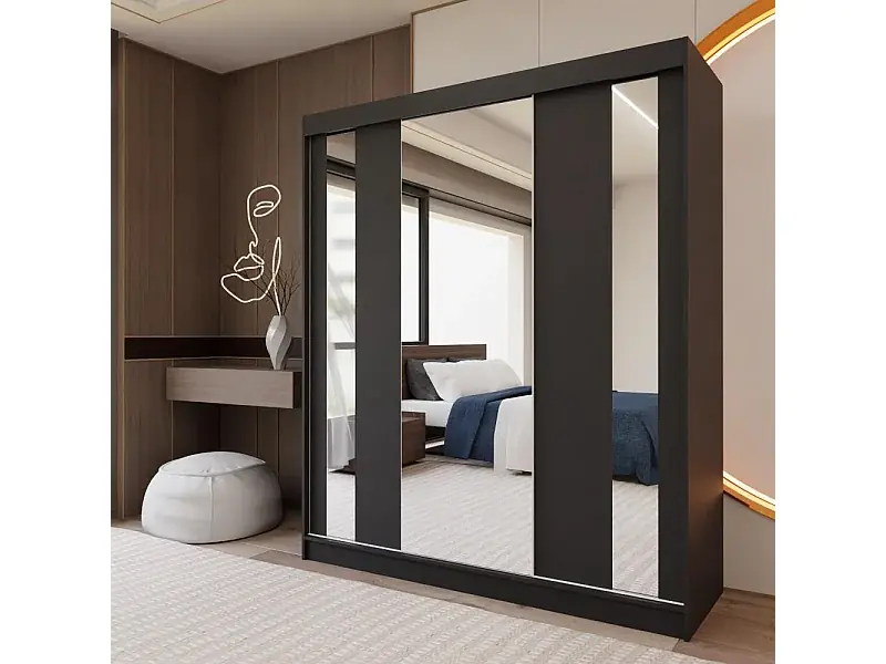 SCHWEBETÜRENSCHRANK Gaja 180/216/61 schwarz mit Spiegel Angebot