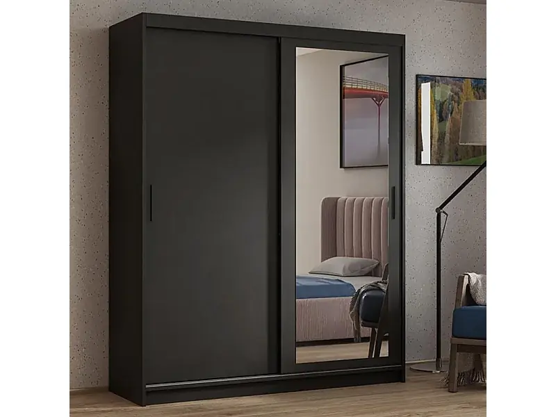 SCHWEBETÜRENSCHRANK Hela 120/205/60 2-türig schwarz mit Spiegel Neu