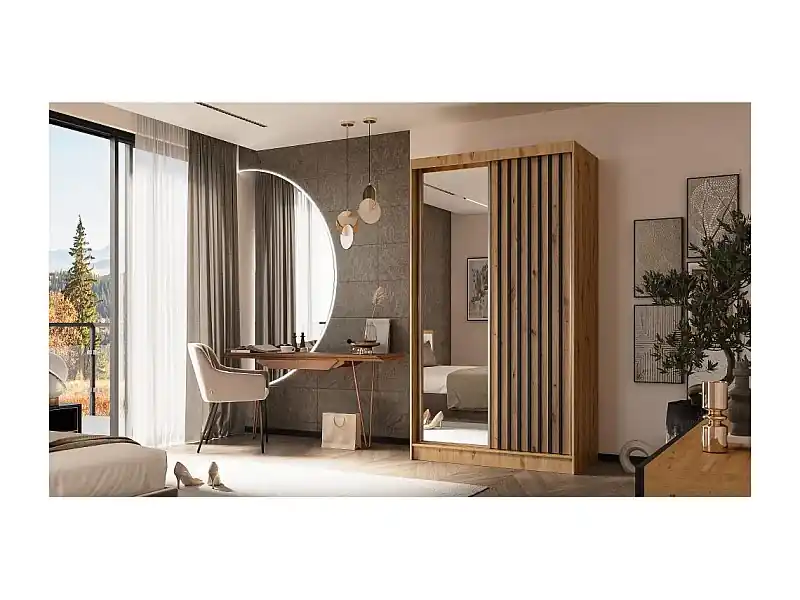 SCHWEBETÜRENSCHRANK Helix 120/216/61 eiche artisan+schwarz Markenware