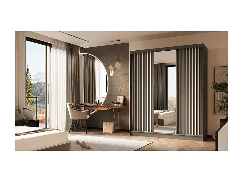 SCHWEBETÜRENSCHRANK Helix 180/216/61 grau+weiß mit Schubladeneinsatz Günstig
