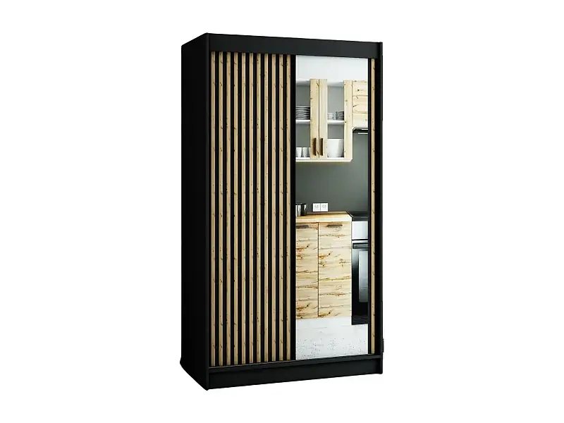 SCHWEBETÜRENSCHRANK LAMELO 2 200/120/62 2-türig (Schwarz/Schwarz/Artisan) Top-Angebot
