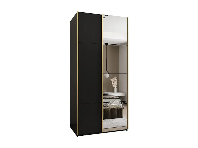 SCHWEBETÜRENSCHRANK Lux 3 245,5/100/64 (Schwarz/Schwarz/Gold) Neuheit