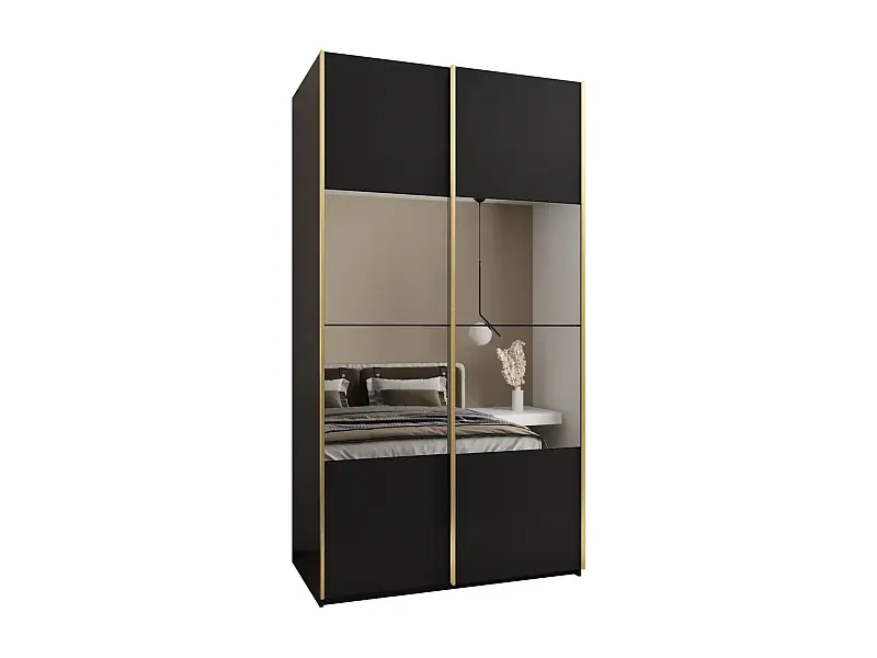 SCHWEBETÜRENSCHRANK Lux 4 245,5/140/64 (Schwarz/Schwarz/Gold) Angebot