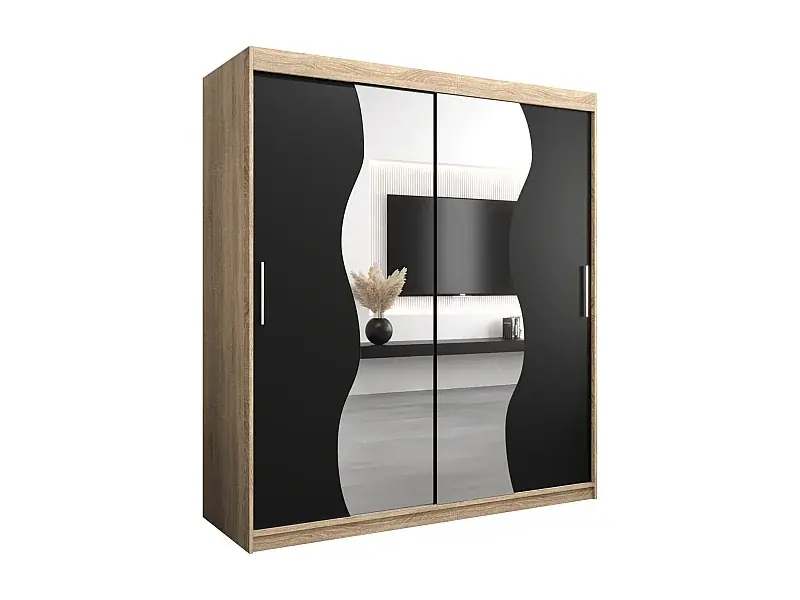SCHWEBETÜRENSCHRANK MADRYT 200/180/62 2-türig (Sonoma/Schwarz) Mega-Angebot