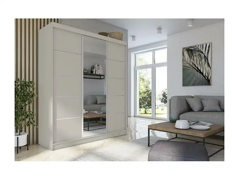 SCHWEBETÜRENSCHRANK Marika 240/216/61 kaschmir mit Spiegel und Schubladeneinsätze Abverkauf