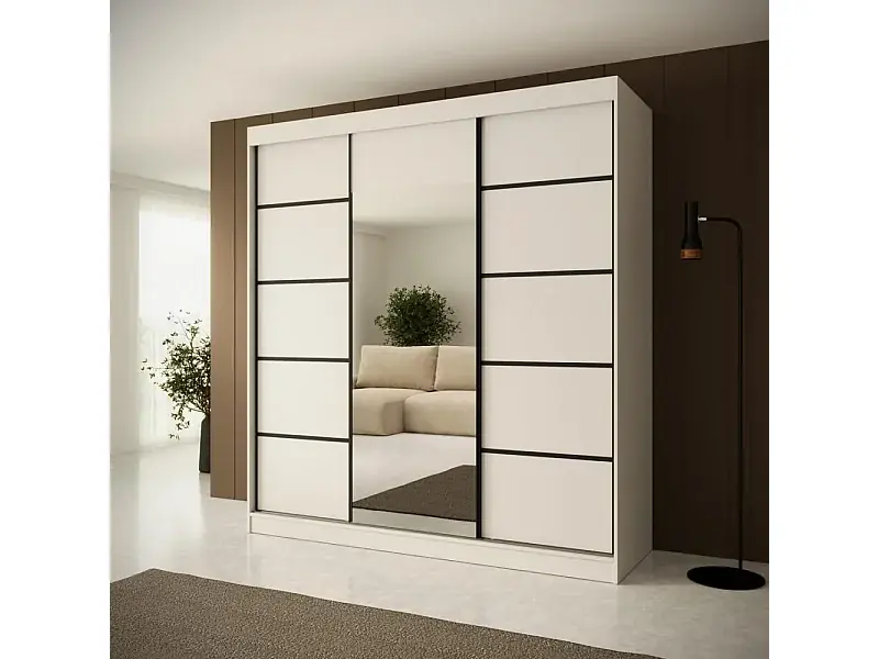 SCHWEBETÜRENSCHRANK Monica 200/215/61 3-türig weiß+schwarz mit Spiegel Highlight