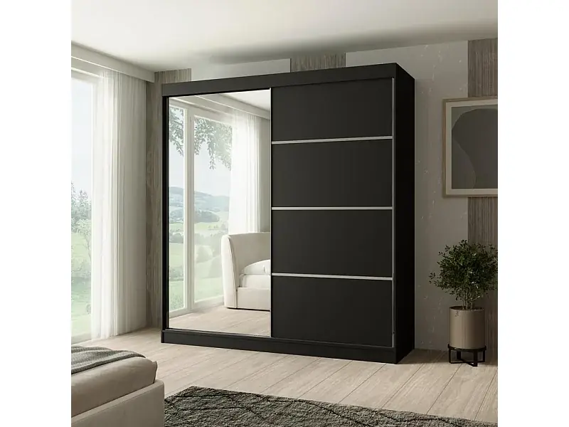 SCHWEBETÜRENSCHRANK Paco 200/215/61 2-türig schwarz mit Spiegel Gratis Versand