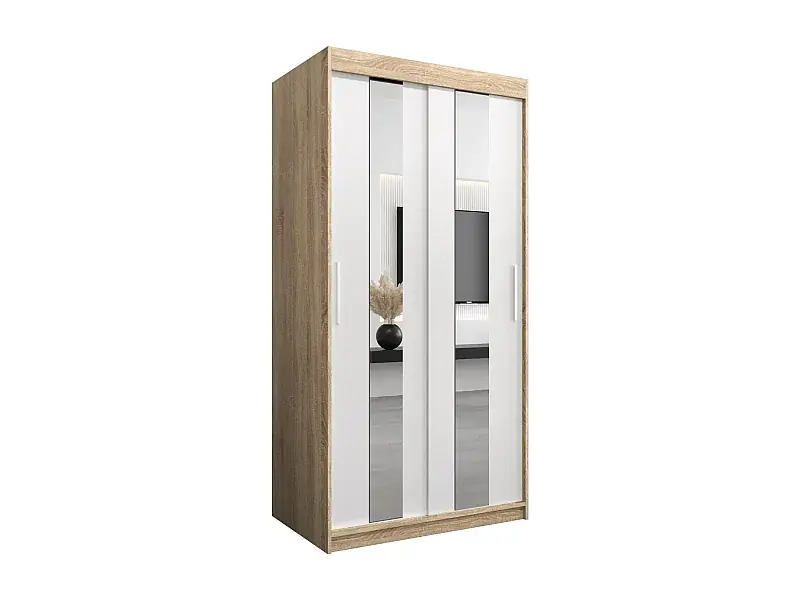 Schwebetürenschrank Pole 200/100/62 2-Türig (Sonoma/Weiß) Wochenendangebot