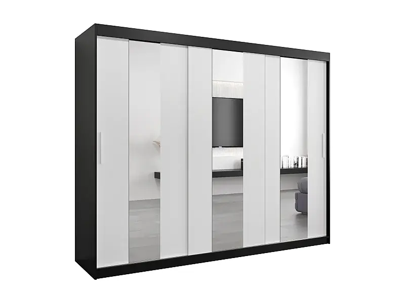 Schwebetürenschrank Pole 200/250/62 2-Türig (Schwarz/Weiß) Mega-Angebot