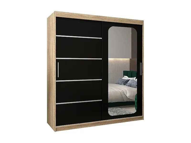 SCHWEBETÜRENSCHRANK PROMO V2 200/180/62 2-türig (Sonoma/Schwarz) Preiswert