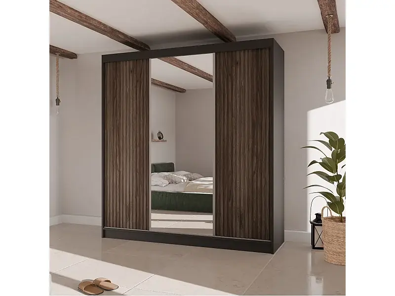 SCHWEBETÜRENSCHRANK Ramos II 200/61/215 schwarz+holzfarben Rabatt