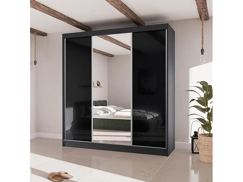 SCHWEBETÜRENSCHRANK Velis II 200/61/215 schwarz Neue Kollektion