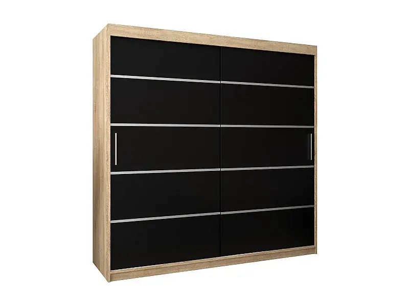 SCHWEBETÜRENSCHRANK VERONA 1 200/200/62 2-türig (Sonoma/Schwarz) Kostenloser Rückversand