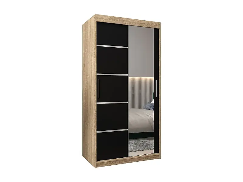 SCHWEBETÜRENSCHRANK VERONA 2 200/100/62 2-türig (Sonoma/Schwarz) Günstig