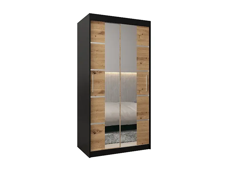 SCHWEBETÜRENSCHRANK VERONA 4 200/100/62 2-türig (Schwarz/Artisan) Wochenendangebot