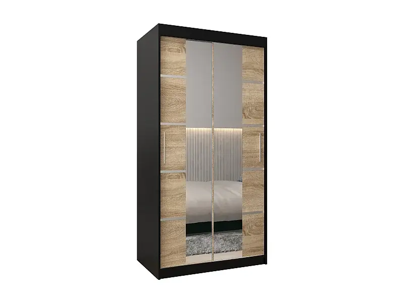 SCHWEBETÜRENSCHRANK VERONA 4 200/100/62 2-türig (Schwarz/Sonoma) Preiswert