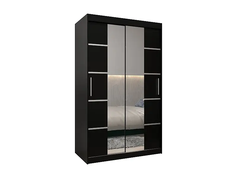 SCHWEBETÜRENSCHRANK VERONA 4 200/120/62 2-türig (Schwarz/Schwarz) Neu