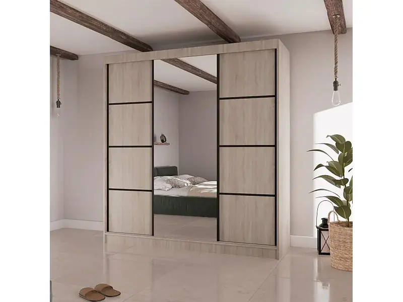 SCHWEBETÜRENSCHRANK Vilo II 200/61/215 eiche sonoma+schwarz Neuheit