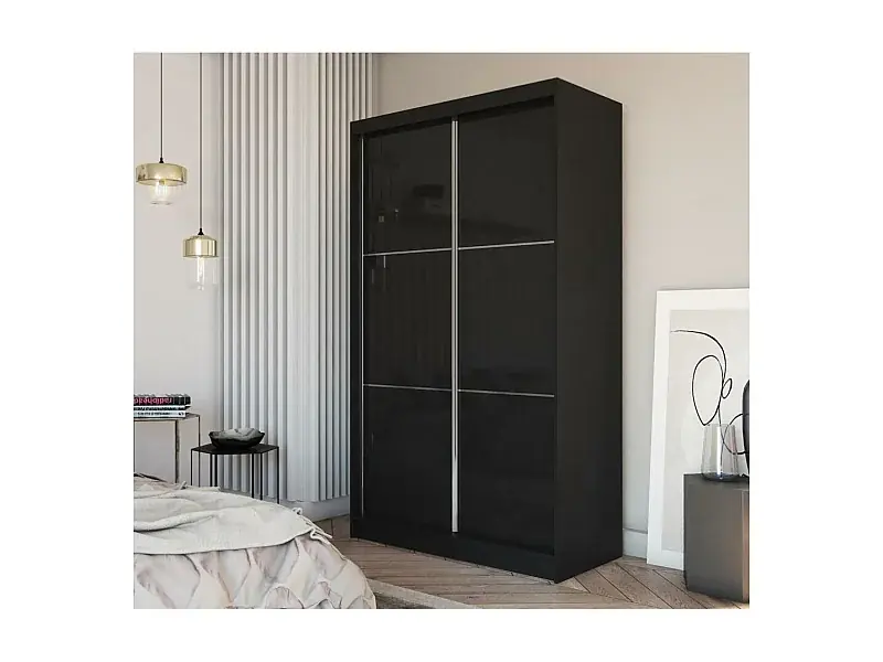 SCHWEBETÜRENSCHRANK Viva 120/216/61 schwarz mit Lacobel-Glas und Schubladeneinsätze Kostenfreie Lieferung