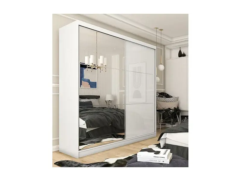 SCHWEBETÜRENSCHRANK Viva 200/216/61 weiß mit Spiegel und Schubladeneinsätze Heißes Angebot