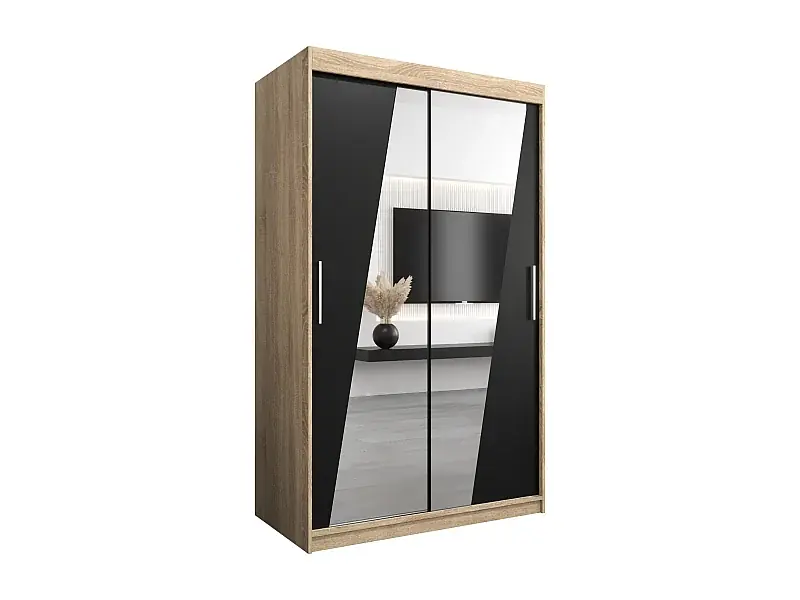 Schwebetürenschrank Wave 200/120/62 2-Türig (Sonoma/Schwarz) Neu