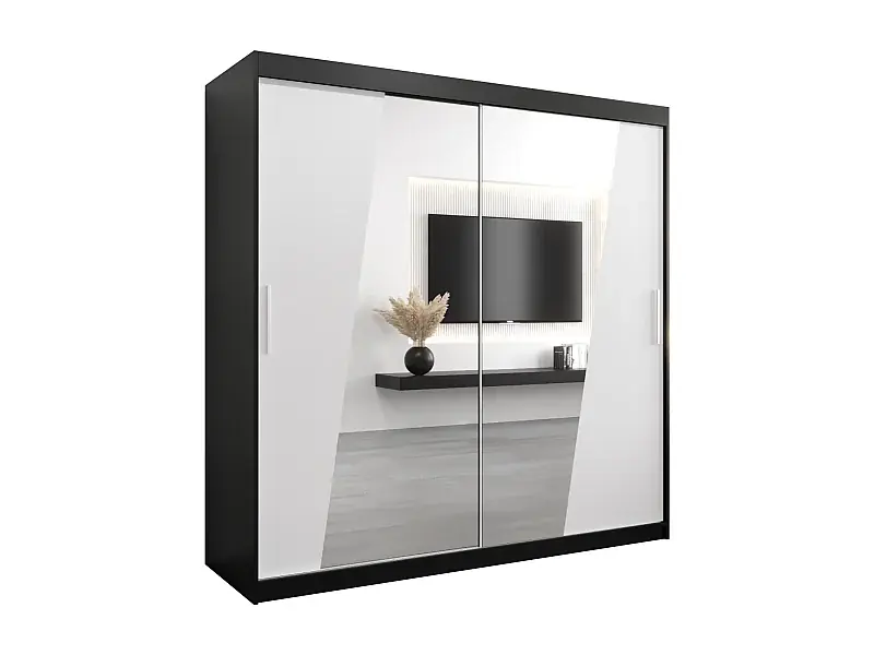 Schwebetürenschrank Wave 200/200/62 2-Türig (Schwarz/Weiß) Schnäppchen