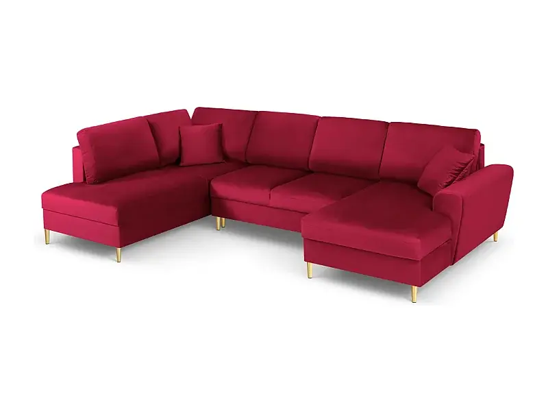 Sichere Zahlung Cosmopolitan Design – 7-Sitzer ausklappbares Panoramasofa mit Bettkasten links „Kyoto“ aus Samt rot – 313x194x88cm